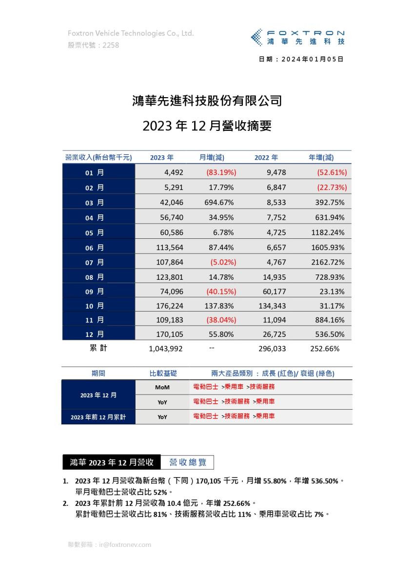 2023年12月營收摘要